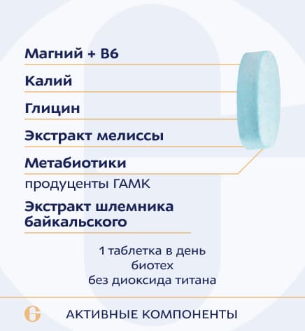 Снижает выработку аминокислот, которые возбуждающе влияют на организм, и в то же время, стимулирует синтез ГАМК – гамма-аминомасляной кислоты, являющейся основным нейромедиатором центрального торможения в нервной системе.