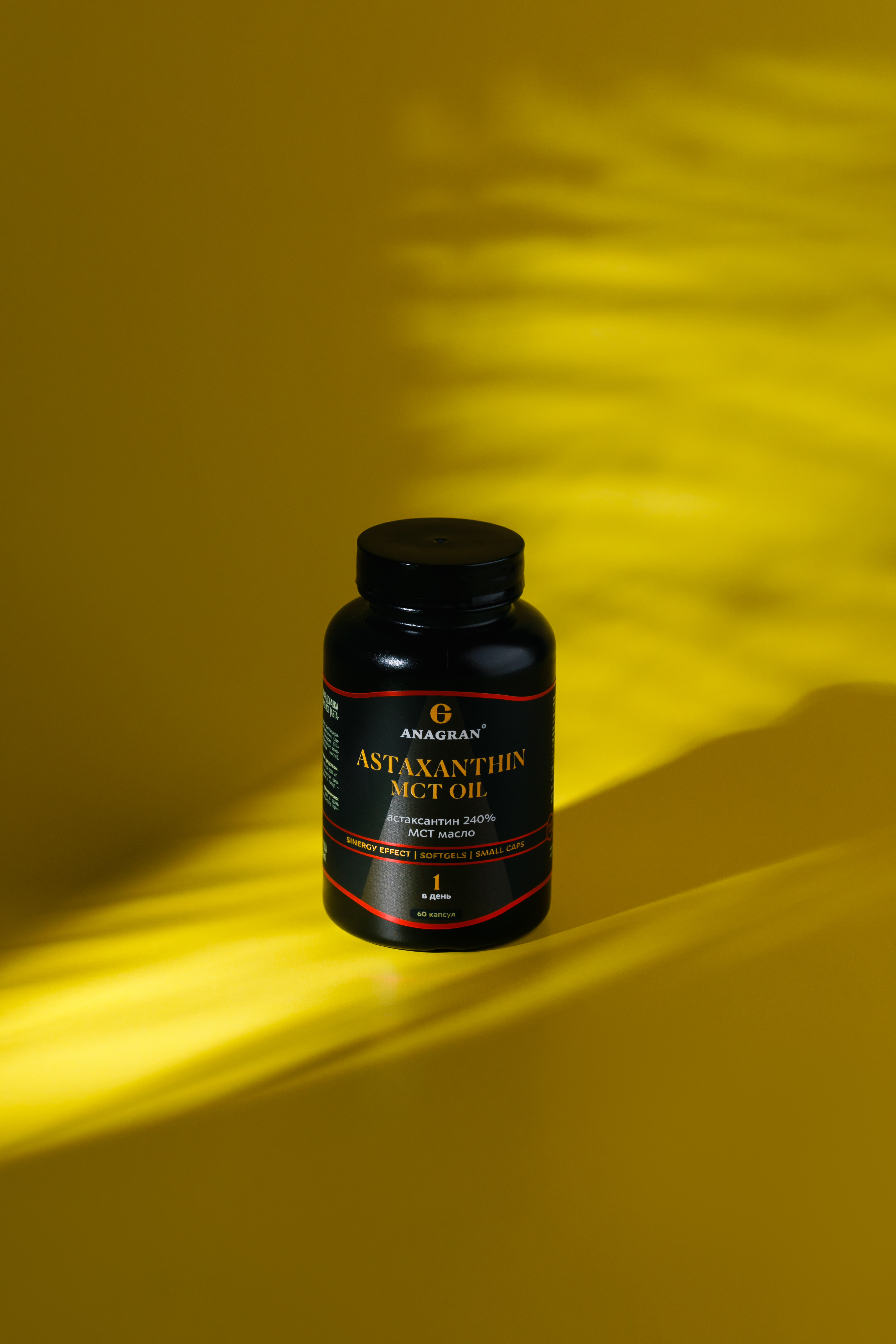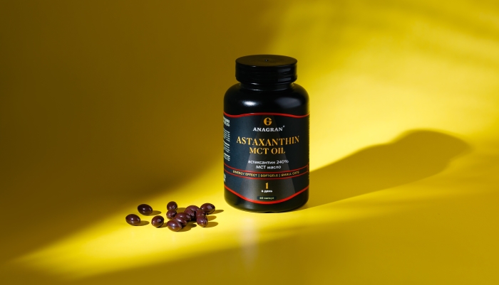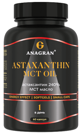 каприл-каприновые триглицериды, капсула желатиновая (желатин, глицерин), антиокислитель «гриндокс 539» (аскорбилпальмитат, натуральные токоферолы, лецитин, рапсовое масло), астаксантин.
