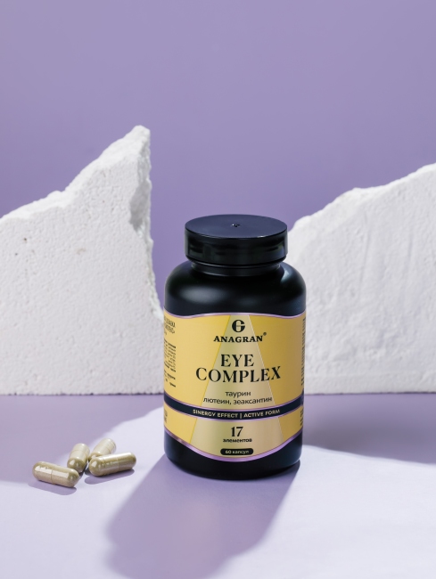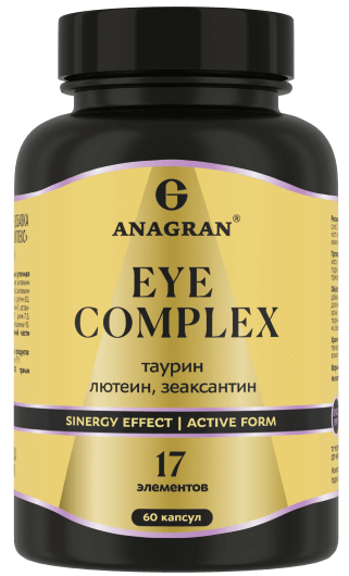 таурин, витамин С (кальция аскорбат), черники плодов экстракт, рутин, витамин Е (токоферола ацетат), лютеин, бета-каротин, цинка цитрат, зеаксантин, астаксантин, L-глутатионмеди аспарагинат, витамин В6 (пиридоксина гидрохлорид), витамин D3 (холекальциферол), витамин В2 (рибофлавин), селексен (9-фенил-симметричного октагидроселеноксантена), хрома пиколинат. Вспомогательные вещества: целлюлоза микрокристаллическая (носитель), капсула желатиновая (желатин, глицерин (агент влагоудерживающий)), крахмал картофельный (носитель), кальциевая соль стеариновой кислоты (агент антислеживающий).