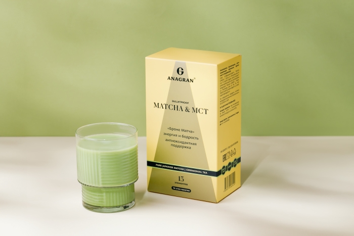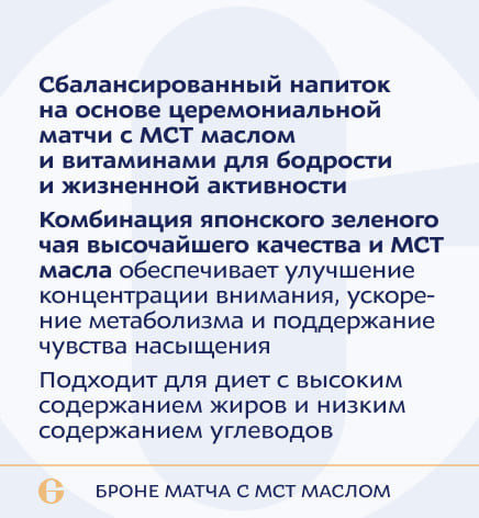 МСТ-масло порошок (средне цепочечные триглицериды), чай матча, премикс 150-23 (токоферола ацетат (витамин Е), никотинамид (витамин В3), ретинола ацетат (витамин А), пантотенат кальция (витамин В5), пиридоксина гидрохлорид (витамин В6), холекальциферол (витамин D3), тиамина мононитрат (витамин В1), рибофлавин (витамин В2), фолиевая кислота (витамин В9), биотин, цианокобаламин (витамин В12). Вспомогательные вещества: ароматизатор натуральный «Кокос», диоксид кремния (антислеживатель), ксантановая камедь (загуститель), гуаровая камедь (загуститель), сукралоза (подсластитель).