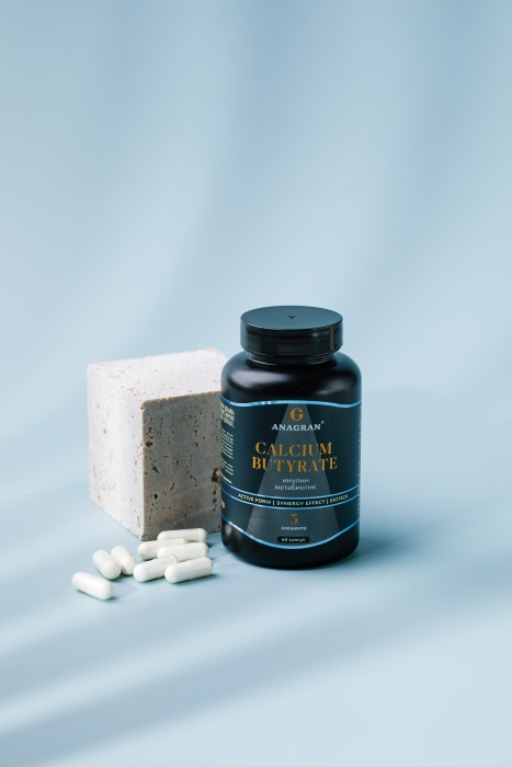 кальция бутират, инулин, бесклеточный фильтрат бактерий «Метафильтрат PR-Frd» (на основе P. freudenreichii ARTB-137). Вспомогательные вещества: капсула желатиновая (желатин, глицерин (агент влагоудерживающий)), крахмал картофельный (носитель), кальциевая соль стеариновой кислоты (агент антислеживающий).