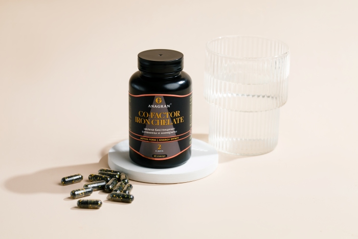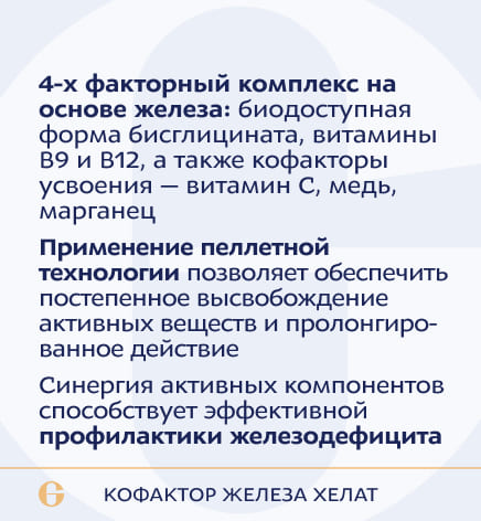 пеллеты (сахароза), капсула желатиновая (желатин (носитель), глицерин (агент влагоудерживающий)), железа бисглицинат, витамин С (аскорбиновая кислота), гуммиарабик (носитель), кремния диоксид (носитель), марганца сульфат, гидроксипропилметилцеллюлоза (носитель), поливинилпирролидон (носитель), меди сульфат, витамин В1 (тиамина мононитрат), витамин В2 (рибофлавин), витамин В6 (пиридоксина гидрохлорид), полиэтиленгликоль (носитель), витамин В9 (фолиевая кислота), витамин В12 (цианокобаламин).