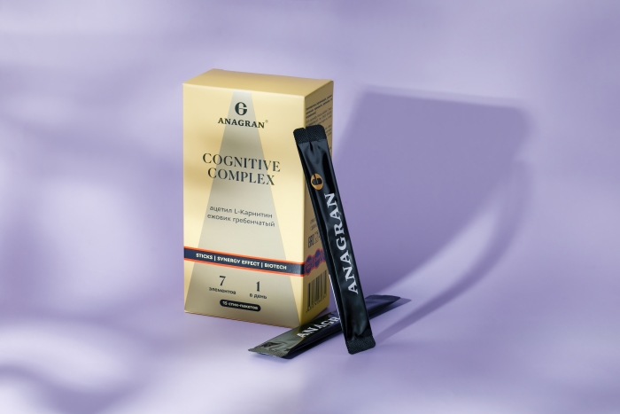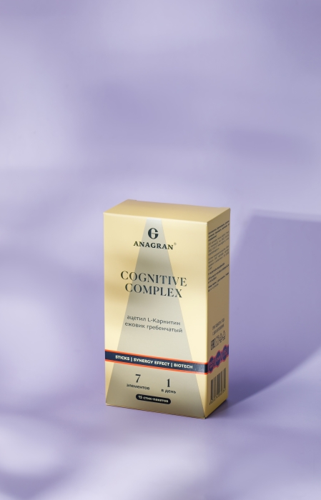 ацетил L-карнитин гидрохлорид, ежовик гребенчатый гриб сухой в порошке ARTM-4, сухая липосомированная субстанция с дигидрокверцетином (дигидрокверцетин, лецитин соевый), теанин, витамин В6 (пиридоксаль-5-фосфат), витамин В1 (тиамина мононитрат), витамин В12 (цианокобаламин). Вспомогательные вещества: палатиноза (изомальтулоза), ароматизатор натуральный "грейпфрут", кремния диоксид (носитель).