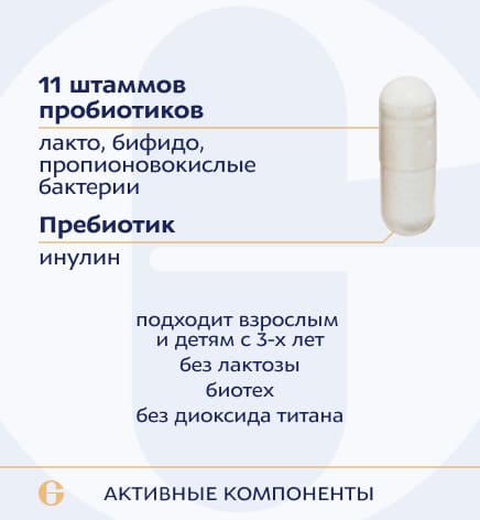 биомассы бактерий селективные сухие серии «Панбиом» («Panbiom»)» (содержит бактерии группы Bifidobacterium adolescentis ARTB-127, Bifidobacterium breve ARTB-129, Bifidobacterium longum subsp. Longum ARTB-184, Bifidobacterium bifidum ARTB-187, Lactobacillus acidophilusARTB-177, Lactobacillus rhamnosus ARTB-183, Lactobacillus casei ARTB-114, Lactobacillus plantarum ARTB-135, Lactobacillus delbrueckii subsp. lactis ARTB-193, Propionibacterium freudenreichii ARTB-137, Streptococcus thermophilus ARTB-188), капсула разъемная твердая желатиновая или целллюлозная (желатин, глицерин (агент влагоудерживающий)), инулин (носитель), кальция стеарат (агент антислеживающий), кремния диоксид (агент антислеживающий ).