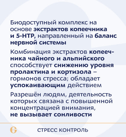 комплекс из экстрактов копеечника альпийского и копеечника чайного (Hedysarum alpinum и Hedysarum neglectum), гриффонии экстракт (5L-гидрокситриптофан), витамин В6 (пиридоксина гидрохлорид), витамин В1 (тиамина мононитрат). Вспомогательные вещества: инулин (носитель), лимонная кислота (регулятор кислотности), неосил (агент антислеживающий), кальция стеарат (агент антислеживающий), мята натуральный ароматизатор, сукралоза (подсластитель).