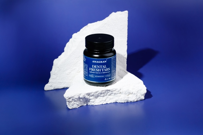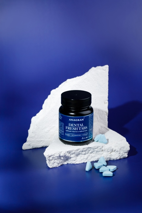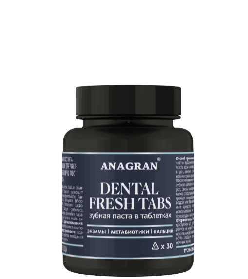 лактоза, натрия гидрокарбонат, яблочная кислота, крахмал картофельный, поливинилпирролидон, мята натуральный ароматизатор, кремния диоксид, ментол ароматизатор натуральный кристаллический, биомасса гидролизованная сухая «УЛЬТРАЛИЗАТ ПЕПТИДНЫЙ BB-Ln» B. Longum subsp. Longum ARTB-184, биомасса гидролизованная сухая «УЛЬТРАЛИЗАТ ПЕПТИДНЫЙ LB-Sl» Lactobacillus salivarius ARTB-142, кальция карбонат, сукралоза, каменное масло, бромелайн, папаин, токоферола ацетат, экстракт цетрарии, краситель бриллиантовый синий.